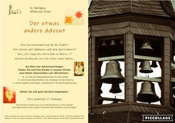 Der etwas andere Advent St. Remigius öffnet die Türen! An allen vier Adventssonntagen finden Sie und Ihre Kinder in unserer Kirche eine kleine Adventsidee zum Mitnehmen: - ein kleines Bastelpäckchen für die Kinder - eine... weiterlesen