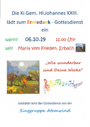 Am Sonntag, den 06.10. um 11 Uhr findet in Maria vom Frieden ein Erntedank-Gottesdienst statt, der von der Singgruppe Atemwind gestaltet. wird. Dazu Herzliche Einladung. weiterlesen