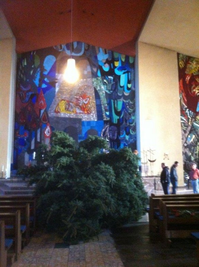 in der Kirche Maria vom Frieden aufzustellen. Der Baum wurde durch das