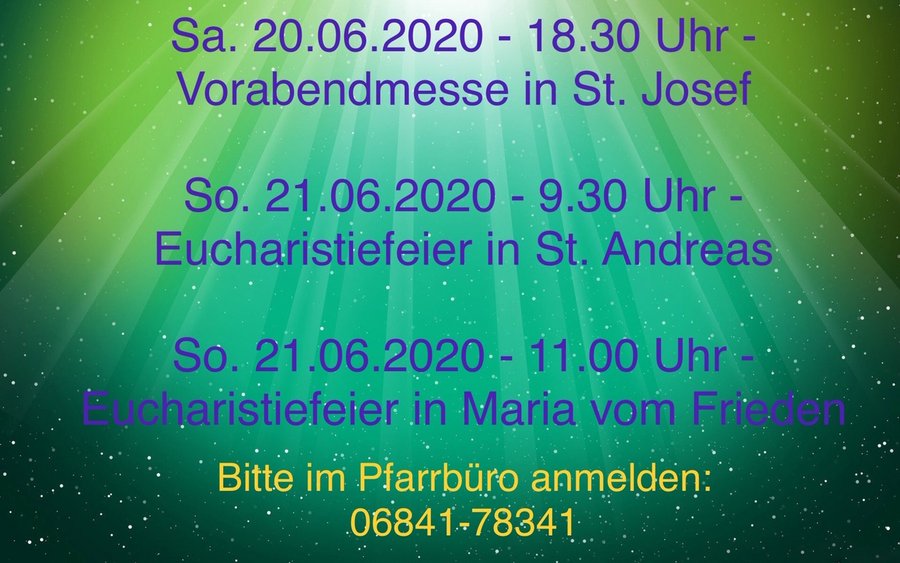 Bitte melden Sie sich bis Freitag 19. Juni 11.00 Uhr im Pfarrbüro an unter Telefonnumer 06841 - 78341.
