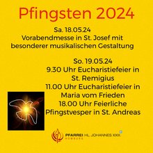 Herzliche Einladung zu den verschiedenen Gottesdiensten an Pfingsten: