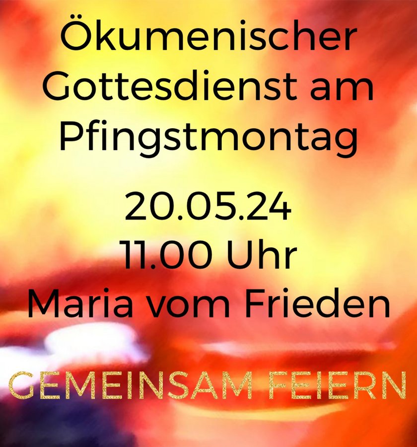 Montag, 20. Mai 11.00 Uhr Maria vom Frieden Erbach: Ökumenischer Gottesdienst anschließend Empfang