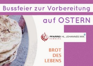 BROT DES LEBENS - Für die Menschen in Europa als auch im Nahen und Mittleren Osten war und ist Brot das Nahrungsmittel schlechthin. Auch die Bibel ist voller Brotgeschichten. So liegt es nahe, dass sich Brot als ein Grundmotiv durch das Leben (Betlehem heißt übersetzt Haus des Brotes!), Sterben und Auferstehen Jesu zieht – und dass christliches Leben und Glauben vom Brot geprägt ist: Ackerboden und menschliche Arbeit, Brotbrechen und Teilen, Gemeinschaft mit Menschen und mit Gott, Hunger und das Bewusstsein, dass nicht nur der Leib, sondern auch die Seele gesättigt werden will, dass der Mensch nicht allein vom Brot lebt. In der Bußfeier wird der eigene Umgang mit Brot in den Blick genommen: mit dem realen Brot und dem Brot des Lebens, Jesus Christus.