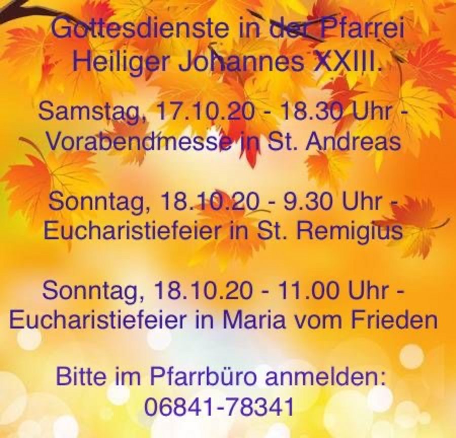 Bitte melden Sie sich bis Freitag 16. Oktober 11.00 Uhr im Pfarrbüro an unter Tel. 06841-78341.
