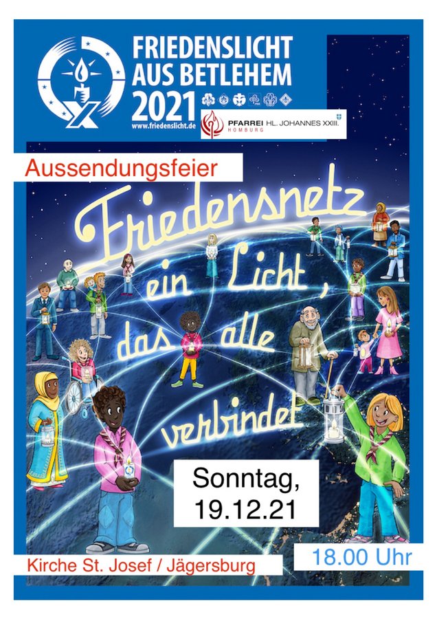 Herzliche Einladung zur Aussendungsfeier „Friedenslicht aus Betlehem“ am Sonntag, 19.12.21 um 18.00 Uhr in der Kirche St. Josef in Jägersburg.