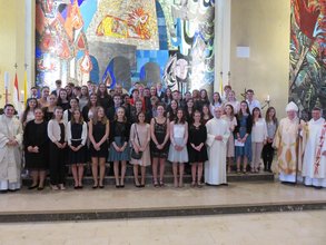 Weihbischof Otto Georgens hat am Samstag 05.05.2018 in der Kirche 'Maria vom Frieden' insgesamt 55 Jugendlichen das Sakrament der Firmung gespendet.