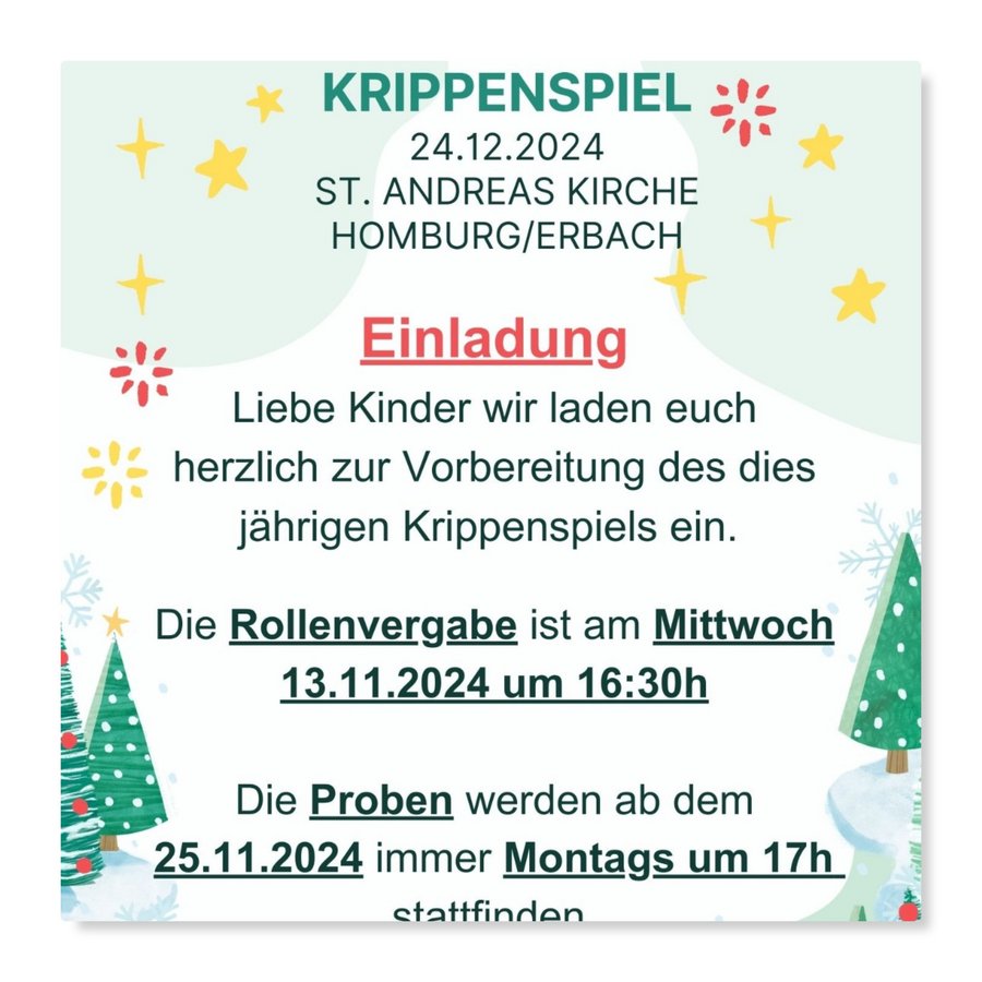 wir laden euch herzlich zur Vorbereitung des diesjährigen Krippenspiels ein!