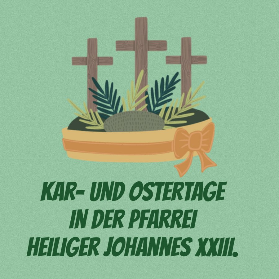 Alle Gottesdienste der Kar- und Ostertage finden sie in der Gottesdienstordnung und im aktuellen Pfarrbrief. Es gibt neben den Gottesdiensten für die Gemeinde auch besondere Gottesdienste für Kinder und Familien die an anderer Stelle aufgeführt sind! Bitte beachten!