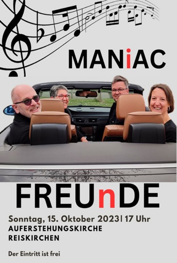 Am Sonntag, 15. Oktober präsentiert sich das Ensemble MANiAC um 17 Uhr in einem Konzert mit dem Titel „FREUnDE“ in der Auferstehungskirche in Reiskirchen.