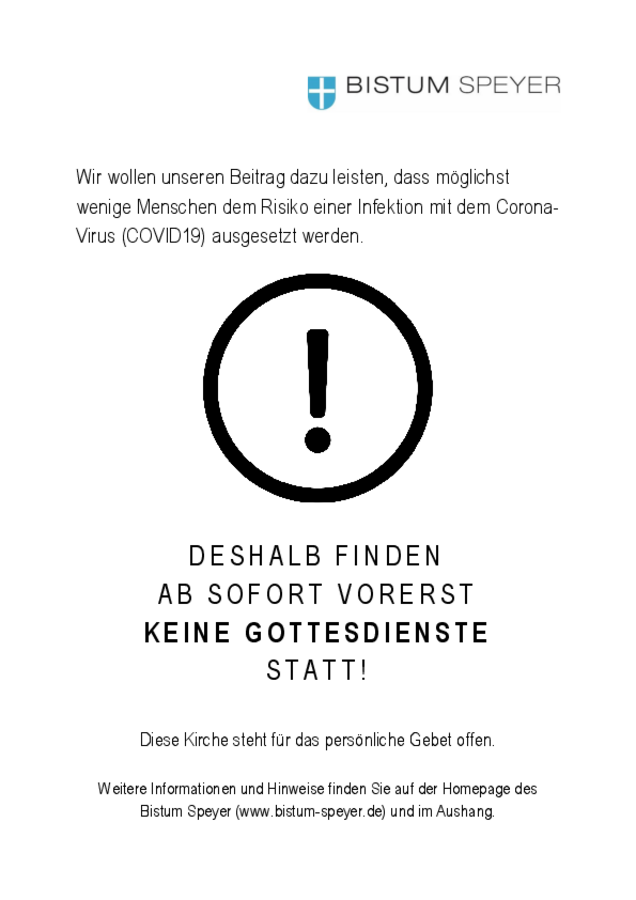 Bistum Speyer sagt alle Gottesdienste und pfarrlichen Veranstaltungen zum Schutz vor Corona ab, zunächst bis zum 19.April